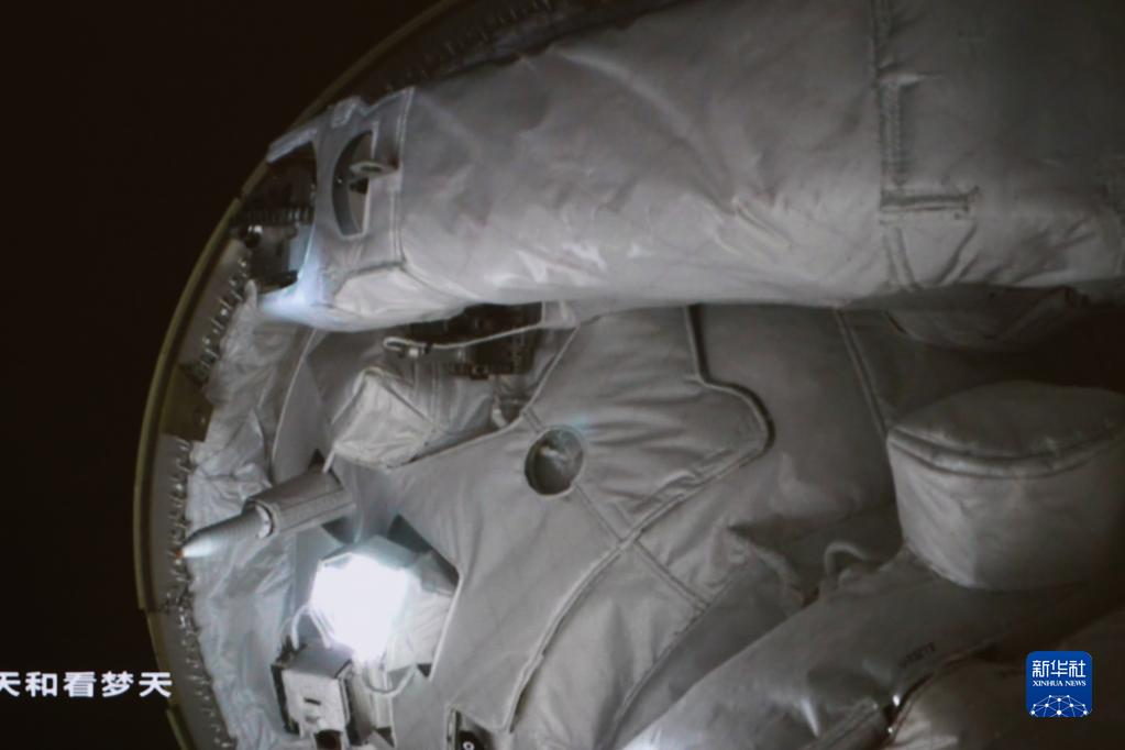 11月1日在北京航天飛行控制中心拍攝的空間站夢(mèng)天實(shí)驗艙與空間站組合體在軌完成交會(huì )對接。這是夢(mèng)天實(shí)驗艙成功對接于天和核心艙前向端口。