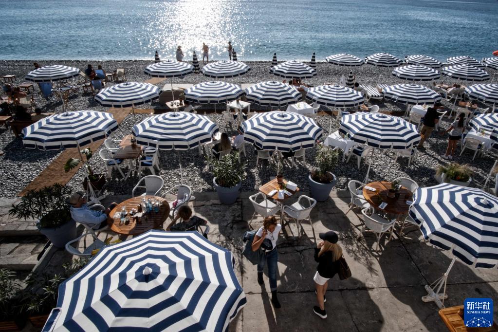 11月2日,人們在法國南部海濱城市尼斯的海邊休閑。