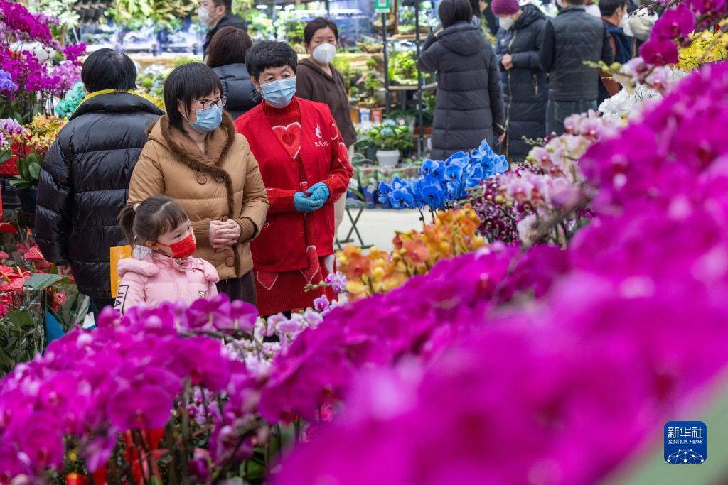 1月14日,河北省唐山市豐南區市民在花卉市場(chǎng)選購鮮花。