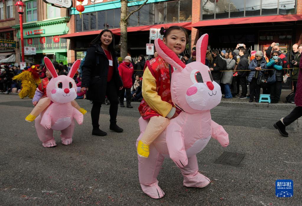 1月22日,在加拿大溫哥華,人們扮成兔子參加大巡游。