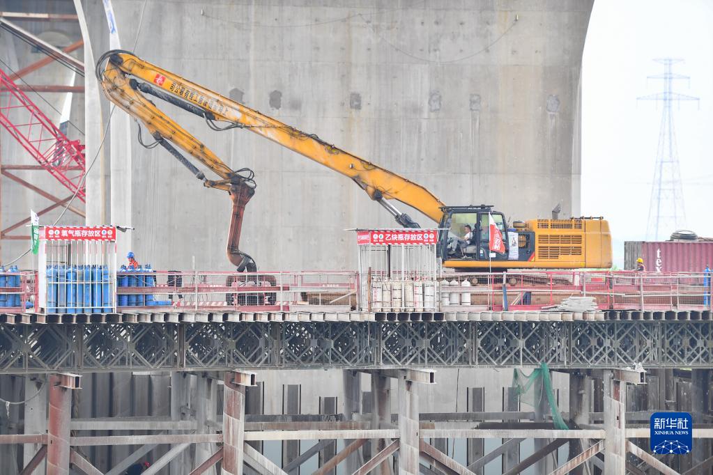 這是6月16日拍攝的香爐洲大橋項目建設現場(chǎng)。