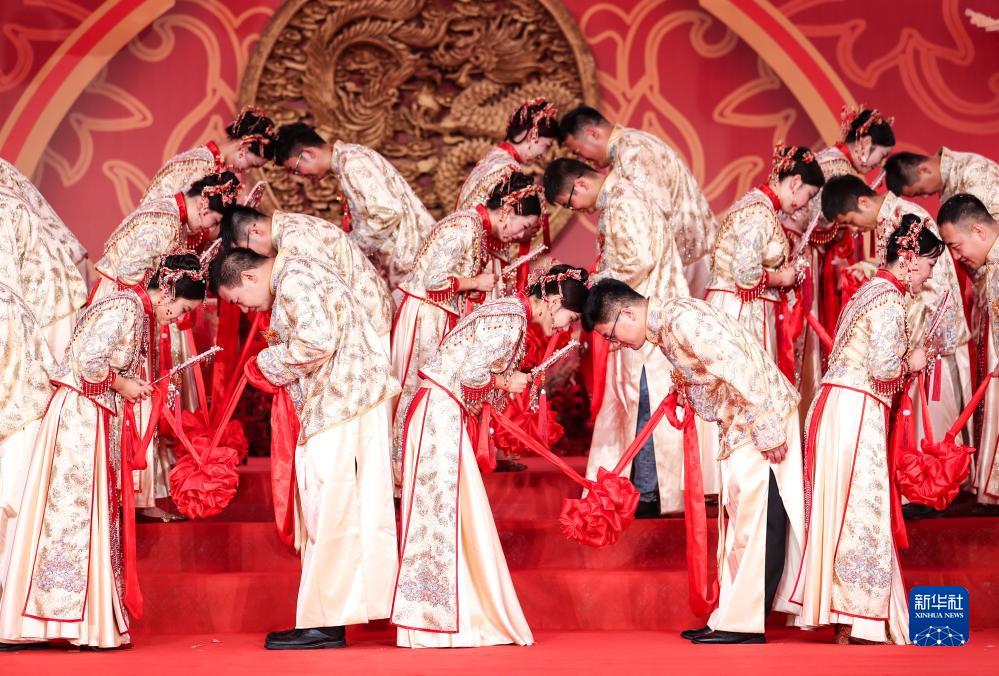 當日,在成達萬(wàn)(成都經(jīng)達州至萬(wàn)州)高速鐵路四川省蓬安縣燕山寨隧道口的施工工地,來(lái)自中鐵三局五公司各建設工地的38對新人,身著(zhù)中國傳統婚禮服飾參加集體婚禮。
